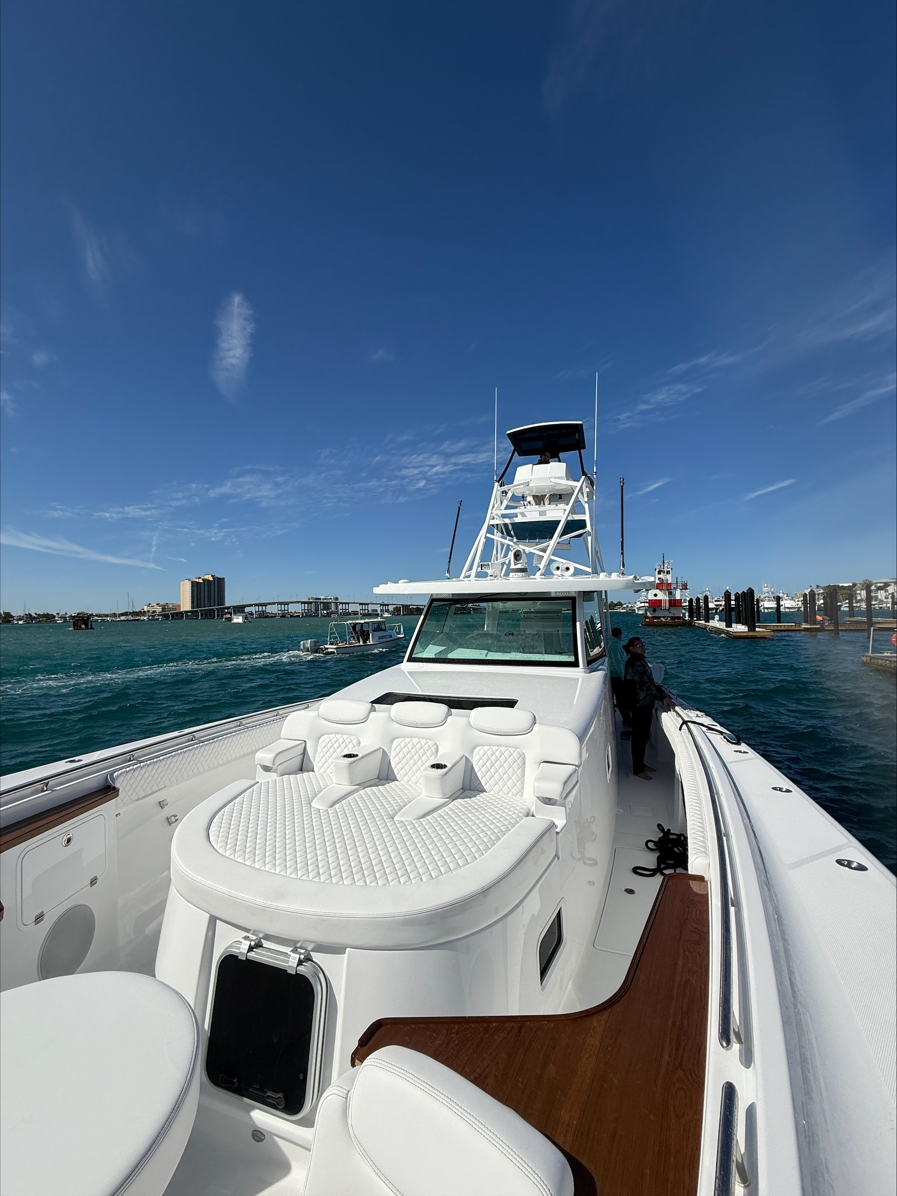 The HCB 56 Sueños GIX represents the pinnacle of luxury and performance in the center console yacht market. Measuring 56 feet 6 inches in length with a 15-foot beam, this flagship model is designed for extended cruising, boasting a 1,300-gallon fuel capacity ideal for long-range travel. Innovative features include a single-point control glass cockpit with a 20-inch touchscreen for complete vessel automation and a split mezzanine seat complemented by a summer kitchen, seamlessly blending leisure with functionality.